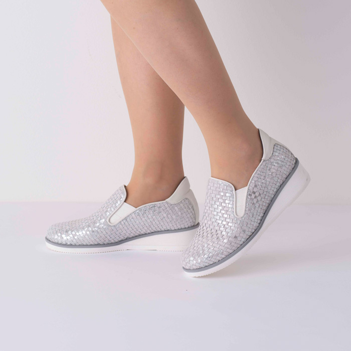 まるで水面のようにきらめき、春夏の装いをワンランクアップさせるスリッポン。