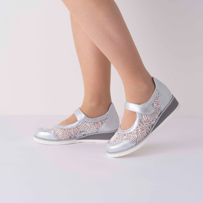 涼やかなチュールレースと光沢感のある牛革が美しい、春夏のメリージェーン